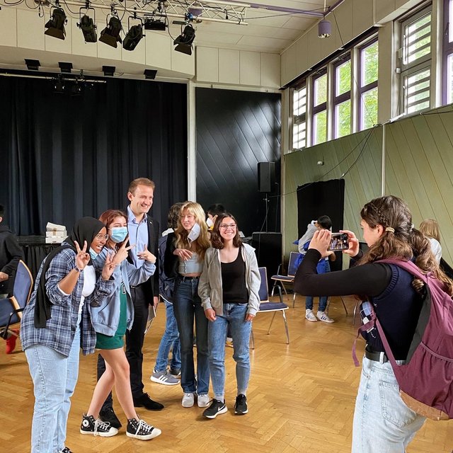 In der anschließenden Diskussion mit dem Landtagsabgeordneten für den Wahlkreis Böblingen – Sindelfingen – Schönbuch stand für die Schülerinnen und Schüler insbesondere die aktuelle Tagespolitik im Vordergrund. Ein bunter Blumenstrauß an Themen wurde in den gemeinsamen Austausch eingebracht: Von Ausbau des Mobilfunknetzes, über die Wettbewerbsfähigkeit unserer Wirtschaft und Maßnahmen zum Klimaschutz bis zur Zukunft der Rentenpolitik. Dr. Matthias Miller freute sich über die lebhafte Debatte: „Mich beeindruckt die Diskussionsfreunde und Wissbegier der Schülerinnen und Schüler stark. Informiert setzen sie sich mit dem Tagesgeschehen auseinander und stellen kritische Nachfragen. Über die vielfältigen Anregungen bin ich dankbar. Eine fundierte politische Bildung ist in Zeiten von Verschwörungserzählungen und einer zunehmenden Polarisierung wichtig. Danke an den stellvertretenden Schulleiter Tobias Walldorf für die Gelegenheit zum Austausch.“